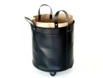 Δερμάτινη Ξυλοθήκη τζακιού στρογγυλή μικρή, μαύρο